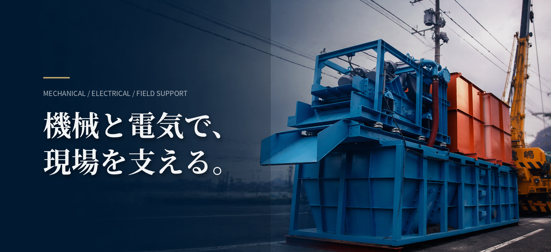 私たちの仕事は現場を支える、機械と電気の仕事。産業機械・工事用機械の整備・製作・据付・制御まで現場目線で対応します。 ご相談ください。 機械整備、製作、電気対応、現場での課題など、まずはご相談ください。実務に根ざした視点で、必要な対応を一緒に整理します。 お問い合わせ